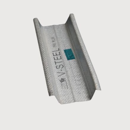 The ceiling section is made of 0.55 mm thick G.I. steel, featuring a knurled web of 51 mm, two flanges of 26 mm each, and 10.5 mm lips, with a 150-micron galvanized zinc alum [AZ] coating.